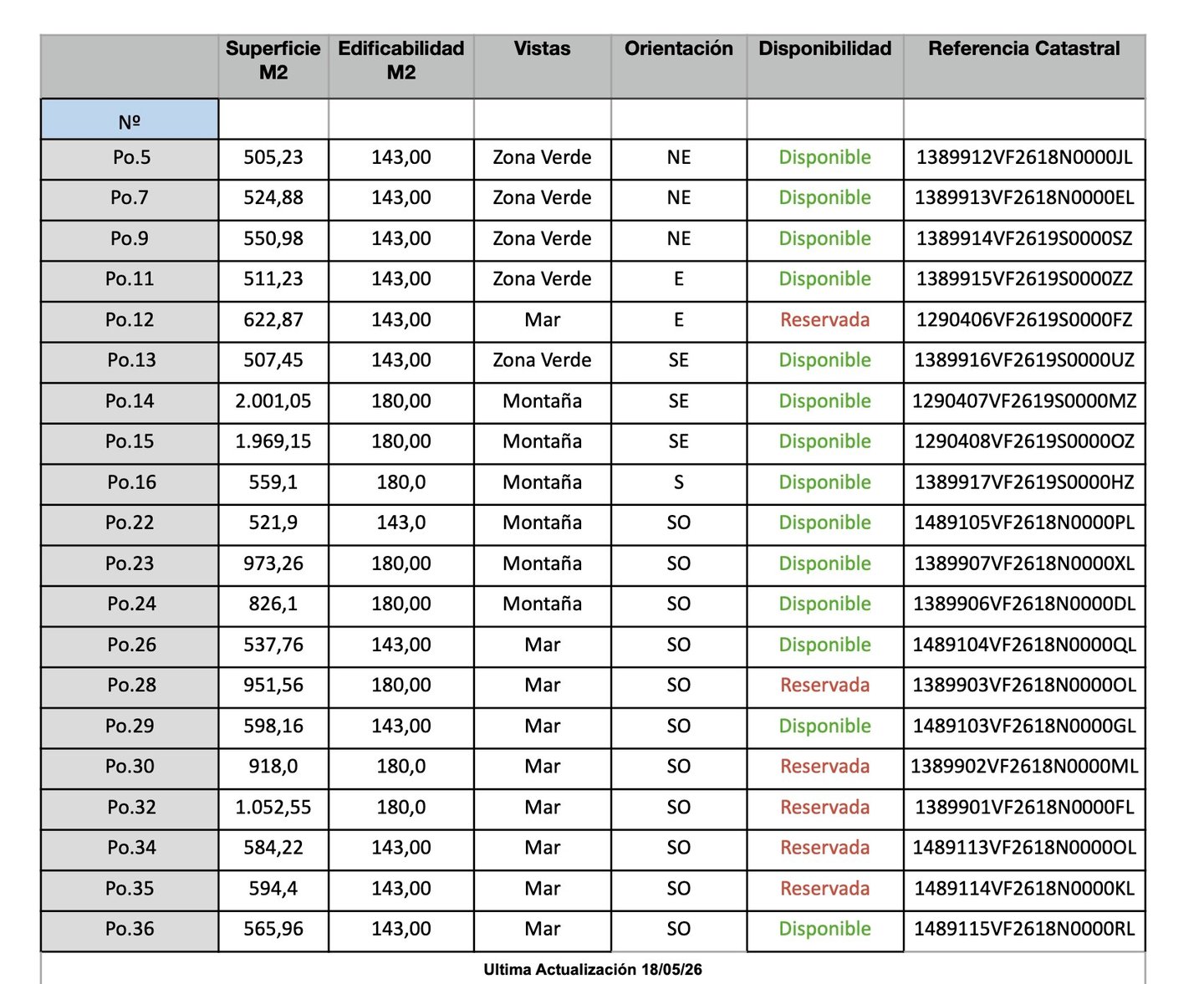 36 parcelas entre Frigiliana y Nerja. Orientación S/SO; vistas al mar.