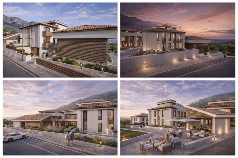 El proyecto continúa avanzando con la definición arquitectónica general de un conjunto de apartamentos turísticos cuidadosamente implantado en su parcela, con una propuesta que busca equilibrio entre integración paisajística, calidad espacial, eficiencia y confort.