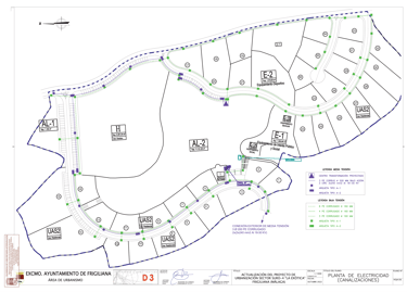 Saneamiento separativo, trazados optimizados para minimizar cruces, arquetas registrables y previsión de reservas para futuras ampliaciones de servicios.